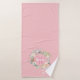 Hübsche, rosafarbene Badehandtücher, mit einem schönen weißen Schriftnamen und einem floralen Rosa-Initial, gerahmt durch eine zarte Aquarellgarage mit blühender Rose auf pfirsichrosa Hintergrund. Personalisieren Sie sich, um ein besonderes Geschenk zu erhalten! Entwickelt von Thisisnotme©