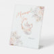 Dieses Tafelschild ist mit zarten rosigen Blumenmustern geschmückt und setzt einen romantischen und raffinierten Ton für die Veranstaltung.