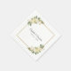 Elegante schicke Botanische Hochzeitsserviette mit romantischen, weißen Vanille-Hochzeitstipps und Rose in Rosa, die in üppiger Vegetation auf einem zeitlosen, weißen Hintergrund dargestellt sind. Ein trendiger, goldfarbener Rahmen sorgt für eine glänzende Touch. Personalisieren Sie Ihre Hochzeitsdetails mit Ihren Namen und Hochzeitsdatum in eleganter Holzkohle-Schrift und Schrift. Eine perfekte Ergänzung zu Ihren Hochzeitsfeiern!