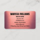 Mit dieser eleganten, gebürsteten Rose Metal Visitenkarte, die für Make-up-Künstler, Stylist, Modeberater, Veranstaltungsplaner oder andere Kreative konzipiert ist, machen Sie einen feinen und anmutigen ersten Eindruck. Der weiche, in Rose gehaltene metallische Hintergrund sorgt für eine raffinierte Touch, während die moderne, fette Typografie Ihre Kontaktdaten klar und beruflich behalte. Dieses auf beiden Seiten vollständig anpassbare, elegante Template bietet eine auffällige Möglichkeit, Ihre Marke mit Raffinesse und Flair zu präsentieren.