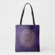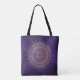 Wunderschöne kreisförmige mandala Kunsttasche in leuchtender Rose Gold auf lila Hintergrund, inspiriert von mehndi Henna Körperkunst. Ideal, um Ihre Sachen zum Yoga, Tanzkurs oder zum Fitnessraum zu tragen.