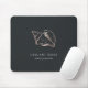 Das schicke, personalisierte Mousepad der Insel für Ihr Business oder Zuhause-Büro besteht aus zwei Textzeilen in klassischer Weißschrift, auf einem weichen schwarzen Hintergrund mit einer Muschel in tropischen Konken in Imitate, Rose Goldfolie für ein Beachglam-Look.
