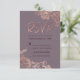 Elegantes, modernes Land und trendige Imitate druckten Rose Gold auf einem lila lila Hintergrund und handgeschriebene Pinsel Drehbuch Schriftart Typografie, RSVP Karten. Dieses klassische und raffinierte Design ist perfekt für jedes stilvolle und trendige Ereignis, einschließlich Hochzeiten und alltägliche Anlässe. Personalisieren Sie Ihre eigene Botschaft auf der Vorderseite sowie ein individuelles Monogramm auf der Rückseite. Das gesamte Foto-Druckdesign.