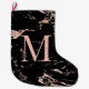 Elegante Rose Gold Foil Black Marble Monogramm Großer Weihnachtsstrumpf
