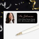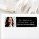 Einfaches und elegantes Adressetikett-Design mit einem hohen Foto Ihres Absolventen mit Rosa / Rose Gold und Weiß Rücksendeadresse Text und schwarzem Hintergrund. Farben können individuell angepasst werden.