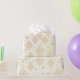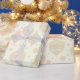 Vintages Viktorianisches Muster mit zarten, rosa goldenen Weihnachtsschmuck und Schneeflocken auf Elfenbeinweißuntergrund für festliche und luxuriöse Weihnachtsgeschenke.