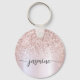 Girly Glam Blush Rose Gold Glitzer Metallic Monogram Name Script Custom Personalisiert Schlüsselanhänger. Diese Design mit Ihrem Vornamen in einem hübschen handgeschriebenen Stil Swash Schwanz Schriftart Signatur Typografie auf rot rosa Imitate Rosa Gold metallische Folie mit Glam funkel Glitzer Rand. Diese sind einfach zu anpassen. Große stilvolle feminine Hauswärmeschenke, auch zum Geburtstag, Muttertag, Hochzeit, Brautparty, süße 16 Geburtstagsparty, Babydusche, für Graduiertenfeier und Es ist für das Mädchen, das einzigartige funkelnde Stilelemente Liebe.