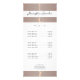 Ein elegantes Styling für Ihren Namen oder Ihren Firmennamen zentriert sich auf einem goldenen Blattmuster der Imitate-Rose über den Kopf dieser anpassbaren Rack-Karte. Alle Typen sind vollständig anpassbar und können für verschiedene Marken modifiziert werden. Diese Rackkarten eignen sich perfekt für Preislisten, Service-Menüs oder Werbezwecke. Design © 1201AM Design Studio