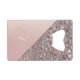 Offene Flaschen im Stil mit diesem eleganten Rose Gold Monogram Credit Card Bottle Opener, mit einer glänzenden Rose Gold Glitzer Design mit einem weichen Hintergrund. Personalisiert mit Ihrem ersten Edelstahlöffner passt dieser schlanke Edelstahlöffner einfach in Geldbeutel, Taschen oder Geldbeutel und macht es praktisch und elegant. Als personalisiertes Geschenk für Hochzeiten, Jubiläen, Abschlüsse, Ferien oder Junggeselle/Junggeselinnen-Abschiede ist es die perfekte Mischung aus Moderne Eleganz und Alltag.