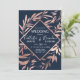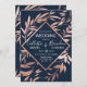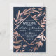 Elegante Rose Gold Navy Blue Floral Blätter Hochze Einladung