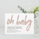 Elegante Babydusche mit Rose Gold glitzernden Typografietext, der in der modernen Schrift "oh baby" sagt. Passen Sie dieses Produkt an, indem Sie eigene Babydusche-Informationen hinzufügen. Modernes funkelnd rosa Design für kleine Mädchen.