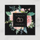 Elegante Aquarell-Blume und Blattwerk in schicken Rosa-, Pfirsich- und Grüntönen mit Rose Gold Hochzeitsringe Logo, Visitenkarten. Hintergrundfarbe, schwarz dargestellt, kann individuell angepasst werden.
