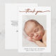 Elegante Rose Gold Script Foto Ankündigung Baby Danke Karte. Der Rücken enthält eine Danksagung, dass Sie personalisieren oder entfernen können, wenn Sie lieber Hand schreiben Sie Ihren Dank. Klicken Sie auf die Schaltfläche Personalisieren, um dieses Design mit Ihrem Foto und den Details zu bearbeiten.