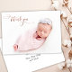 Modernes Chic Elegant Calligraphy Rose Gold Script Neugeborenen Baby Foto Vielen Dank für Ihre Geburtsankündigung Karte. Enthält einen hübschen "Dankeschön"-Text in einem handgeschriebenen Kalligrafie-Swash-Schwanz-Schriftart-Skript in IMITATEN rosa Rosa Goldfolie. Vorgefertigte persönliche Nachricht auf der Rückseite. Ideal für ein kleines Mädchen oder einen kleinen Jungen. Einfach mit Ihrem Baby Foto und Details personalisieren.