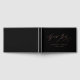 Für Ihren Hochzeitsempfang bietet dieses elegante Gästebuch eine moderne Schrift-Schrift in Rose, in der Sie neben Ihren Namen und Ihrem Hochzeitsdatum das "Gästebuch" lesen, um auf schwarzem Hintergrund zu personalisieren. Die Wirbelsäule hat auch einen Titel, den Sie anpassen können. Entworfen von Susan Coffey.