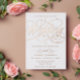 Elegante Rose Gold und Weiß Hochzeit Einladung mit einem Wirblen Kalligraphie-Skript Sprichwort Hochzeit in Rose Gold Folie. Elegante kalligraphische Hochzeitseinladung in Weiß mit Rose Goldfolie-Schrift. Sie sind zur Hochzeit der Hochzeitseinladung mit informellen Formulierungen in Rose Gold auf Weiß eingeladen.