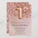 Elegante Rose Goldene Kinder Party 1. Geburtstag Einladung