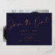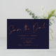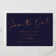 Modernes, elegantes Goldfolienskript in realer Rose auf marineblauen Hochzeiten speichern das Datum mit einer lässigen und coolen Schriftzeichen-Kalligraphie,fügen Sie Ihr Foto auf der Rückseite