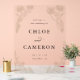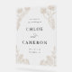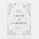 Das Design zeichnet sich durch elegante Vintage Kalligraphie aus, die von traditionellen Schriftart inspiriert wird. Das Design umfasst einen zarten handgezeichnet Blumenbogen, der von Gartenfässern mit miteinander verflochtenen Rose, Blume und Blätter inspiriert wird. Minimalistisch und elegant, ideal für traditionelle Hochzeiten und Hochzeiten im Garten.