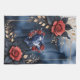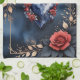 Elegante Rose mit goldenem Blattwerk auf dunkelblauem Aquarell. Ein stilvolles, dekoratives Design mit rote Rosen, dunklen Blätter und goldenen Akzenten vor einem tiefblauen, wasserfarbenen Hintergrund. Der zarte goldene Rahmen und die ausgewogene Anordnung der Blüten verleihen dem Motiv eine raffinierte und raffinierte Optik. Ideal für alle, die elegante Blumenkunst, romantische Rose und luxuriöse Farbkontraste Lieben. Ideal für Wandkunst, Wohngestaltung, Mode-Accessoires und Geschenke mit einer Touch von Eleganz.