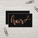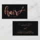 Moderne Visitenkarte für Friseursalons oder Friseursalons mit Imitaten, Kupfer-Rose-Goldschere, Kalligrafie-Schriftart und massivem schwarzen Hintergrund.