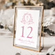 Elegante Rose Rosa Wappen Monogramm Hochzeit Tischnummer