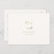 Elegant, frisch und modern. Diese schöne und stilvolle Hochzeitsrottkarte bietet eine hübsche handgezeichnet Rose und ein zeitgemäßes Set von Schriftart in einem sanften Imitat Gold, vor einem leichten Elfenbeinhintergrund. Auf der Rückseite der Postkarte finden Sie alle Informationen, die Sie benötigen, wie z.B. Anwesenheitsliste und Menüoptionen. Variationen dieses Designs sind in der Sammlung verfügbar.