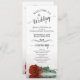 Dieses wunderschöne Hochzeitsprogramm besticht durch ein elegantes Design mit einer Single-Rose in Rost-Orange, die auf der Seite liegt und im Wasser reflektiert wird. Die Titel sind in extravaganter Schrift-Kalligraphie geschrieben, und es gibt Platz für Ihre Zeremonie und Hochzeitsfeier Details, sowie ein kurzes Dankeschön für Ihre Gäste. Ein wunderbarer Weg, um Ihre Freunde und Familie zu Ihrer Hochzeitsfeier zu begrüßen.
