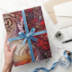 Elegante Rote Blüte Goldene Federn Beaded Geschenkpapier