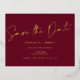 Moderne, elegante Goldfolien Drehbuch roter Bordeaux Hochzeit speichern das Datum mit einer lässigen und coolen Skriptkalligraphie .