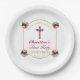 Elegante Rote Rose Gold Cross 1. Heilige Kommune Pappteller