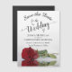 Diese wunderschönen Magnetkarten sind der perfekte Weg, um Ihre Freunde und Familie zu lass wissen, um Save the Date für Ihre kommende Hochzeit. Sie sind romantisch eingerichtet und verfügen über eine lange rote Rose aus Single, die in einem Becken mit Wellen und Wellen reflektiert wird. Klassisch und elegant, das schlichte rot-weiße Design beinhaltet die kalligraphische Schrift mit Schnürschrift.