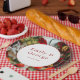 Elegante rote Rosen blühen Blume blumengeschmückte Hochzeitspapiere Teller