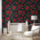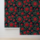 Elegante Rote Rosen mit grünen Blätter auf schwarz Tapete