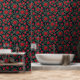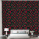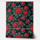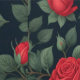 Ein nahtloses Blumenmuster mit lebhaften rote Rosen in voller Blüte, umgeben von üppig grünen Blätter. Set vor schwarzem Hintergrund, der markante Kontrast verstärkt die Eleganz und Romantik des Designs und macht es zu einem idealen Ort für Textilien, Tapeten oder dekorative Drucke.