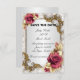 Hübsche rote Rosen und goldenes Blattmuster. Diese schöne Save the Date-Karte ist eine stilvolle Möglichkeit, Ihren großen Tag zu verkünden. Personalisieren Sie die Karte, indem Sie den Text in den angegebenen Feldern ändern. Sie können den Stil, die Größe und die Farbe des Schriftartes ändern.