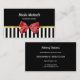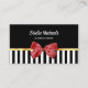 Eine elegante schwarz-weiße Streifen Visitenkarte mit rotem Bogen und goldenem Streifen. Personalisieren Sie, indem Sie Ihren Namen und Ihr Unternehmen oder Beruf der Wahl.