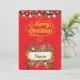 Elegante rote und goldene Weihnachtsfotokarte | Pe Einladung