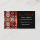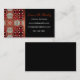 Schöne Geschäftskarte getan in Rotem und in Schwarzem mit einem geometrischen Metall, das Entwurf, auf der links Seite und einem festen schwarzen Textbereich schaut. Text ist in der Farbe, in der Art und in der Größe zum Anzug Ihr Bedarf völlig kundengerecht.