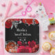 Schöne Geburtstagspapierplatte mit roten Blumen und silbernem Blattwerk. Die Wörter können geändert werden, um Ihren eigenen Details oder Anforderungen gerecht zu werden. Wäre perfekt für eine Sweet-Sixteen-Geburtstagsfeier.
