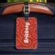 Reisen Sie stilvoll mit diesem auffälligen Gepäckanhänger der roten Wirbel. Mit seinem kühlen und eleganten Design in kräftigen Krontönen verleiht dieses Etikett jedem Koffer oder Reisebeutel einen Pop der Persönlichkeit. Es gibt eine Vorlage zum Einfügen Ihres Namens und Ihrer Informationen. Egal ob Sie mit dem Jet auf der ganzen Welt jetgehen oder auf einem Wochenendausflug unterwegs sind, Ihr Gepäck zeichnet sich durch Flair und Eleganz aus.