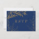 Elegante Royal Blue and Gold Leaf RSVP Card