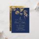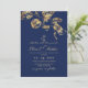 Elegante Royal Blue and Gold Leafs Wedding Einladung