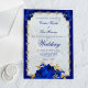 Diese elegante Hochzeitsinspektion mit blauen blauen Blütenfasern und einem filigranen, vergoldeten Schmuckrahmen kombiniert mit blauen Rose sorgt für ein elegantes Hochzeitsdesign. Der blaue Text in klassischen formellen Schriftart kann leicht für Ihren ganz besonderen Tag personalisiert werden.