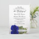 Diese schöne Hochzeitseinladung ist einfach, traditionell und elegant. Es ist ein wunderschönes Foto einer lang gezimmerten, lebhaften königsblauen oder kobaltfarbenen Rose, die sich in einem Wasserbecken mit formaler Formulierung widerspiegelt, in dem die Brauteltern die Einladung aussprechen. Die extravagante Skriptkalligraphie verleiht ihr einen zeitlosen und klassischen Stil. Eine schöne Art, Ihre Freunde und Familie zu einem Teil Ihres besonderen Tages einzuladen.