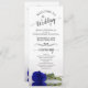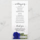 Dieses wunderschöne Hochzeitsprogramm besticht durch ein elegantes Design mit einem Single, der lang gestemmt und lebhaft königsblau oder kobaltfarben Rose liegt und im Wasser reflektiert wird. Die Titel sind in extravaganter Schrift-Kalligraphie geschrieben, und es gibt Platz für Ihre Zeremonie und Hochzeitsfeier Details, sowie ein kurzes Dankeschön für Ihre Gäste. Ein wunderbarer Weg, um Ihre Freunde und Familie zu Ihrer Hochzeitsfeier zu begrüßen.