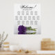Dieses moderne, blumengeschmückte Hochzeitsstatue verfügt über 16 Tische mit romantischem Design und einer atemberaubenden lila Rose, die sich auf der Seite des Hotels befindet und in einem Wasserbecken reflektiert. Der Titel "Willkommen! Bitte Finden Sie Ihren Tisch" ist elegant in Schrift-Kalligraphie geschrieben, und am Ende ist viel Platz für die Namen des Paares und das Hochzeitsdatum. Das Diagramm bietet Platz für 160 Gäste, mit 10 Sitzplätzen für jeden Tisch, die Eleganz, Klasse und Stil zu Ihrem Hochzeitsempfang hinzufügen und den Gästen die Möglichkeit geben, bequem Platz zu finden.