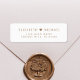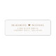 Elegante weiße Rücksendeadressen-Aufkleber für Ihre Hochzeitseinladungen, speichern Sie die Daten, Ankündigungen der Verlobung, Dankeschön-Karten und andere Hochzeitskorrespondenz mit Ihren Namen in klassischen goldenen Serifen Typografie verbunden durch ein Herz.