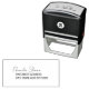 Erstellen Sie Ihre eigene Rücksendeadresse-Briefmarke. Nehmen wir diese moderne, klassische Hochzeitsfeier-Rücksendeadresse, die sich selbst prägt und Briefmarke. Verwenden Sie die Vorlage, um Ihre eigene Rücksendeadresse Gummi selbstfärbende Briefmarke zu erstellen.