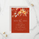 Dieses schlichte und elegante Rostorange-Hochzeit im Herbst-Save the Date-Design besticht durch ein lebendiges und natürliches Blumenstrauß, Blätter und Beeren in Sonnenuntergangstönen von Orangen, Pfirsichen und Taupes, die eine rustikale bohobische Eleganz schaffen und Ihre stilvolle Herbsthochzeit ergänzen. Die Erwärmung der Aquarellfloralen ist perfekt gepaart mit elegantem Serif-Text auf einem reichen Terrakotta-Orange-Hintergrund, um einen kühlen und dennoch raffinierten Look zu schaffen. Ideal, um Ihren besonderen Tag mit einem eleganten Herbstcharakter zu gestalten!